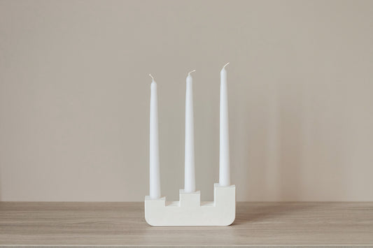 Handcrafted Gypsum Candlestick Holder for Three Long Candles