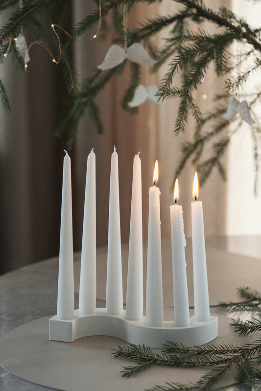 White Round Gypsum Candlestick Holder for Long Candles - Home Décor