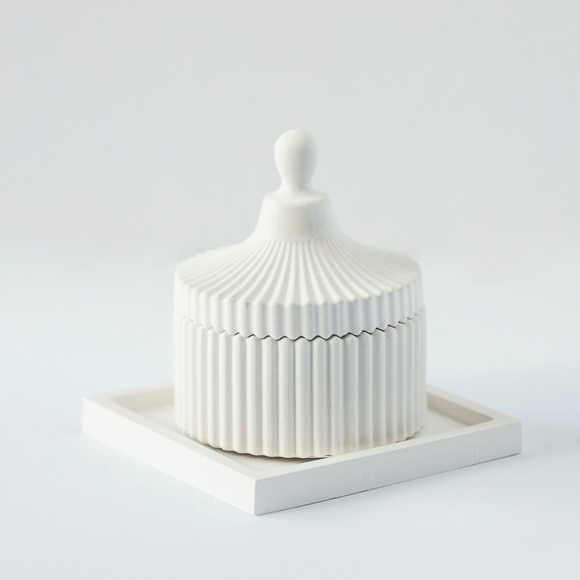 White Square Tray from Gypsum - Decorative Minimalist Elegance for Candles and Home Decor - Hand-Made Plate